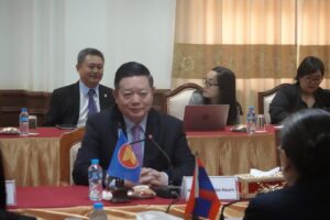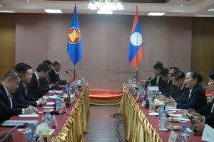 តបតាមការអញ្ជើញរបស់ឯកឧត្តម Saleumxay Kommasith ឧបនាយករដ្ឋមន្ត្រី រដ្ឋមន្ត្រីការបរទេស នៃសាធារណរដ្ឋប្រជាធិបតេយ្យប្រជាមានិតឡាវ ឯកឧត្តមបណ្ឌិត កៅ គឹមហួន អគ្គលេខាធិការអាស៊ាន បានដឹកនាំគណៈប្រតិភូលេខាធិការដ្ឋានអាស៊ាន ធ្វើទស្សនកិច្ចការងារនៅប្រទេសឡាវ ដើម្បីត្រៀមសម្រាប់ ការធ្វើជាប្រធានអាស៊ានរបស់ឡាវនៅឆ្នាំ២០២៤ ហើយនៅព្រឹកថ្ងៃពុធ ២ រោច ខែកត្តិក ឆ្នាំថោះ បញ្ចស័ក ព.ស. ២៥៦៧ ត្រូវនឹងថ្ងៃទី ២៩ ខែវិច្ឆិកា ឆ្នាំ២០២៣ នៅទីក្រុងវៀងច័ន្ទ ប្រទេសឡាវ ឯកឧត្តមបណ្ឌិត កៅ គឹមហួន អគ្គលេខាធិការអាស៊ាន បានអញ្ជើញជួបពិភាក្សាការងារទ្វេភាគីជាមួយ លោកជំទាវ Suanesavanh Vignaket រដ្ឋមន្ត្រីព័ត៌មាន វប្បធម៌ និងទេសចរណ៍របស់ឡាវ និងជាប្រធានក្រុមប្រឹក្សាសហគមន៍សង្គម-វប្បធម៌អាស៊ាន (ASCC Council) នាពេលខាងមុខ។