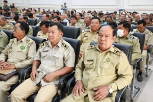 ព្រៃវែង ៖ ក្រសួងមហាផ្ទៃកំពុងបង្កើនការយកចិត្តទុកដាក់លើការពង្រឹងសមត្ថភាពបំពេញការងាររបស់កម្លាំងប្រជាការពារនៅតាមមូលដ្ឋានឃុំ សង្កាត់ ទូទាំងប្រទេស។ នៅថ្ងៃទី២៥ ខែធ្នូ ឆ្នាំ២០២៣នេះ ឯកឧត្តមអភិសន្តិបណ្ឌិត ស សុខា ឧបនាយករដ្ឋមន្រ្តី រដ្ឋមន្រ្តីក្រសួងមហាផ្ទៃ បានណែនាំអគ្គស្នងការដ្ឋាននគរបាលជាតិ រៀបចំយន្តការបណ្ដុះបណ្ដាលគ្រូបង្គោល ដើម្បីបន្តទៅបើកវគ្គបណ្ដុះបណ្ដាលពង្រឹងសមត្ថភាពដល់កម្លាំងប្រជាការពារដែលកំពុងបំពេញការងារនៅតាមមូលដ្ឋានភូមិ ឃុំ សង្កាត់។